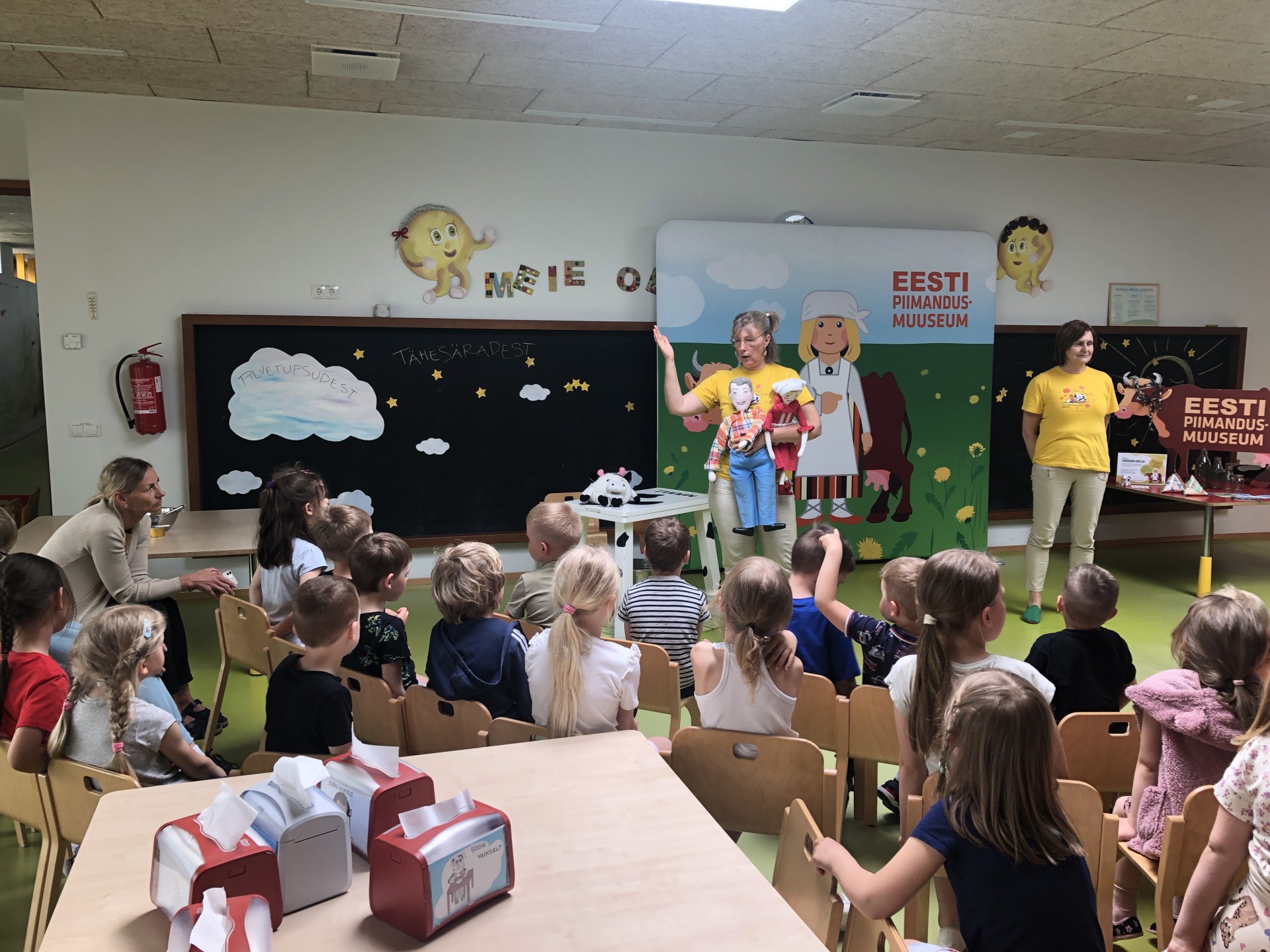 Külaskäigul meile, said lapsed osa harivast ja meeleolukast töötoast. Erinevate näitlike vahendite ja põnevate dialoogide kaudu, mõtlesid lapsed aktiivselt kaasa ning kinnistasid oma teadmisi piimanduse teemadel. Näitekst üks arutlusteema oli, et miks on lehmal saba? Arutelud olid põimitud liikuma innustavate mängude ja tantsudega. Töötoa tipphetk oli päris ise jäätise tegemine, mida kõik lapsed usinasti, meeskonnatööna lõõtspilli rütmi saatel valmistasid. Õhtuoote järel said kõik isetehtud jäätist ka maitsta. Ja üks lapsesuu arvas, et ise tehtud jäätis on palju parem kui poest ostetud! Igatahes vahva programm, millest Kiigepõnnide osasaamist toetas PRIA.